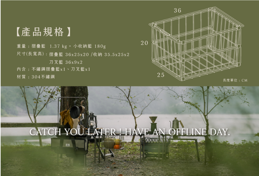 重量:摺疊籃 1.37g + 小收納籃 180g