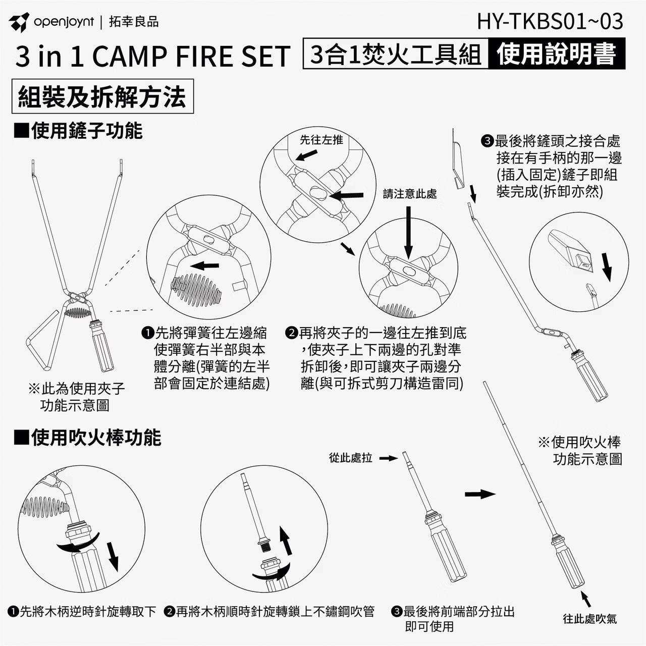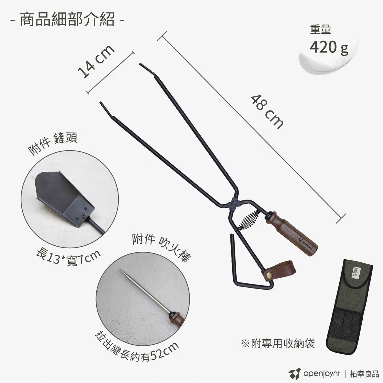 為了提供給消費者便利性,我們把焚火夾/鏟子/吹火棒這三個最為重要的功能集結在同一支工具裡