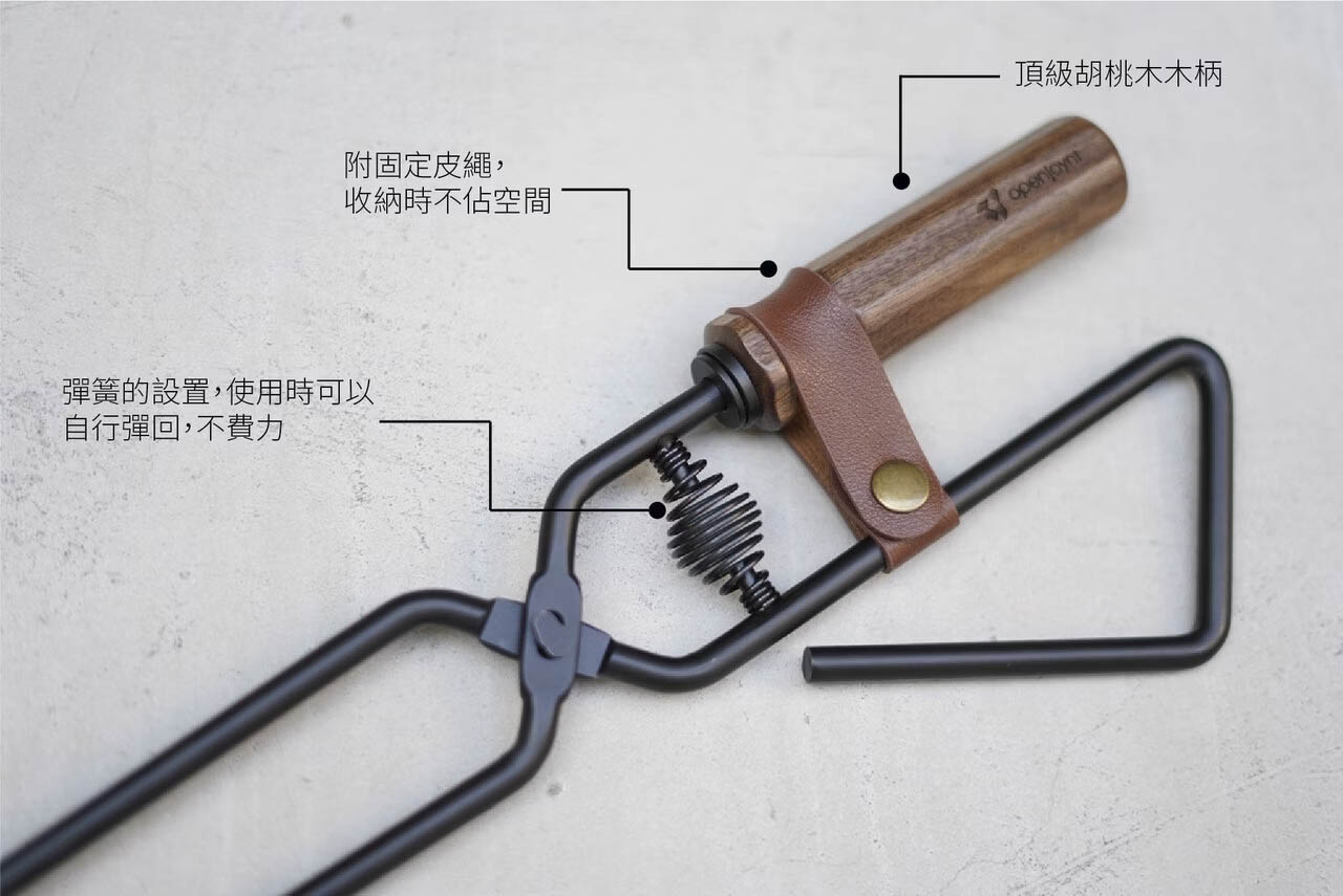 2.因此焚火夾是設計用來夾取木材以及木炭的,請勿夾取其他過重的物品,以免造成故障及傷害。
