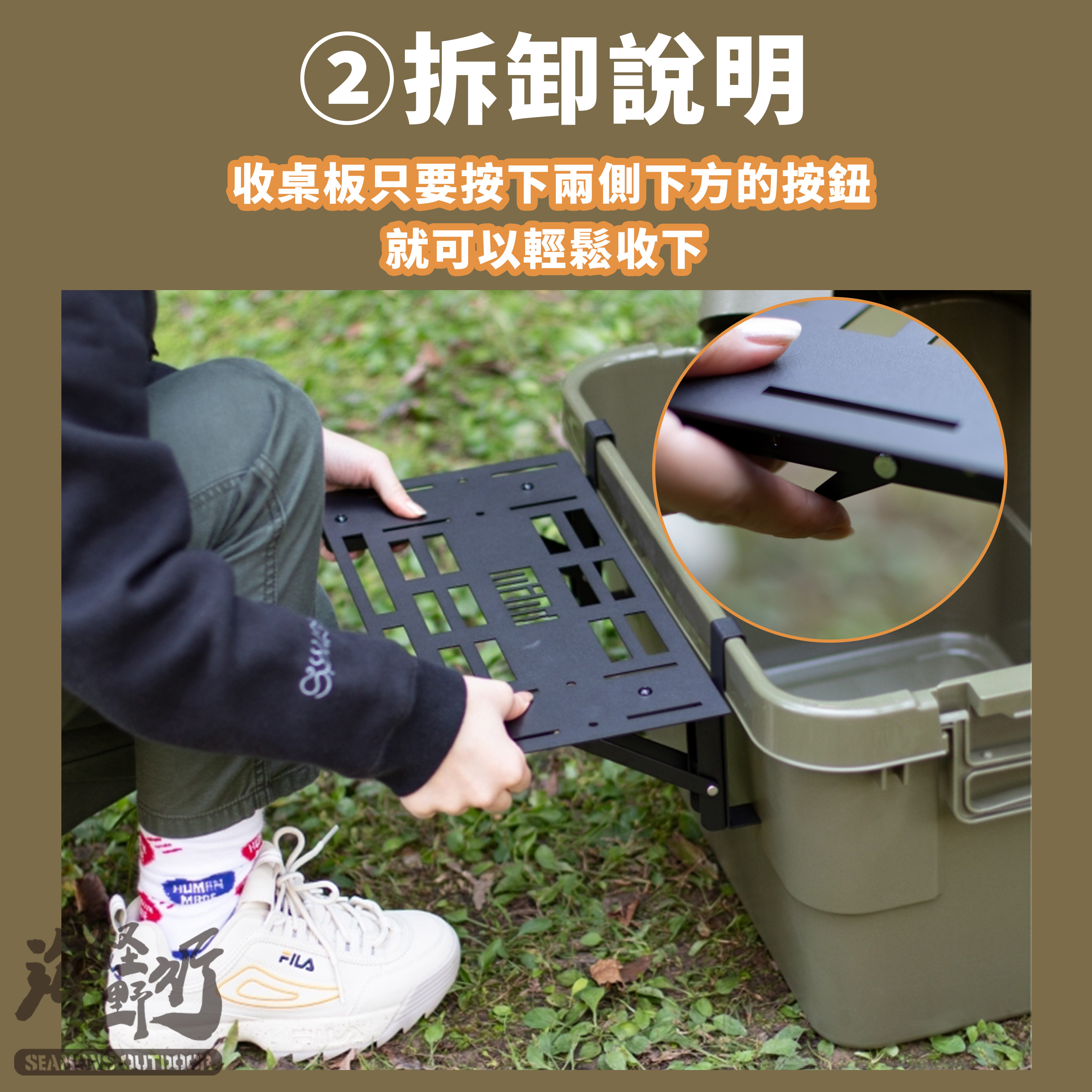 .露營玩家必備,把傳統收納箱加上延伸桌板,變得超實用