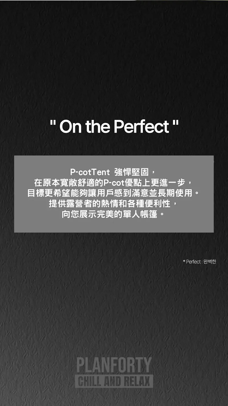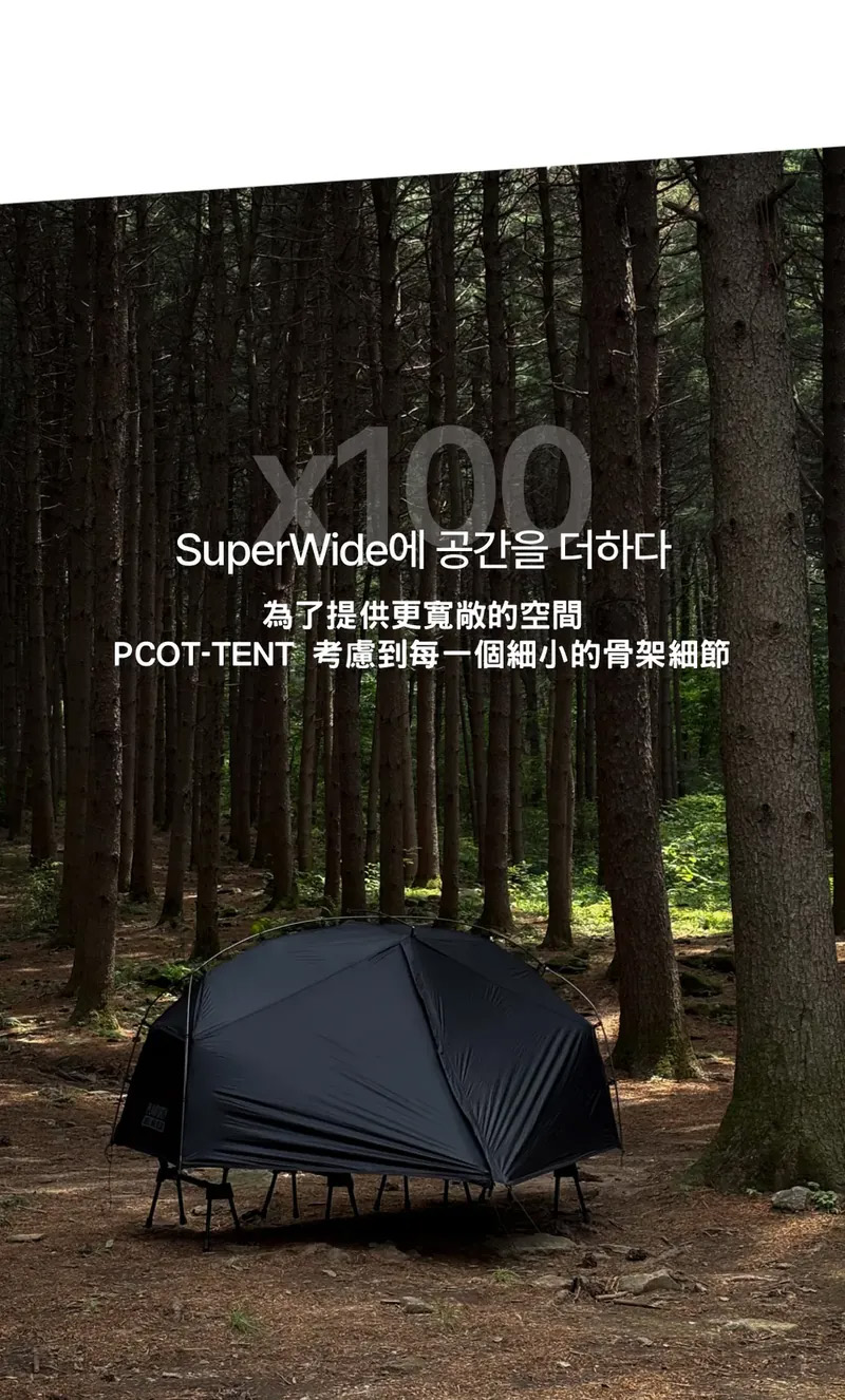 P-COT TENT 由韓國品牌 PLANFORTY 開發,將自家最得意的行軍床,設計了完美的行軍床帳,