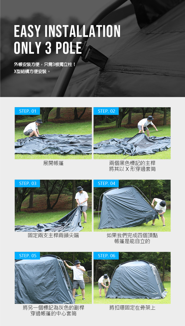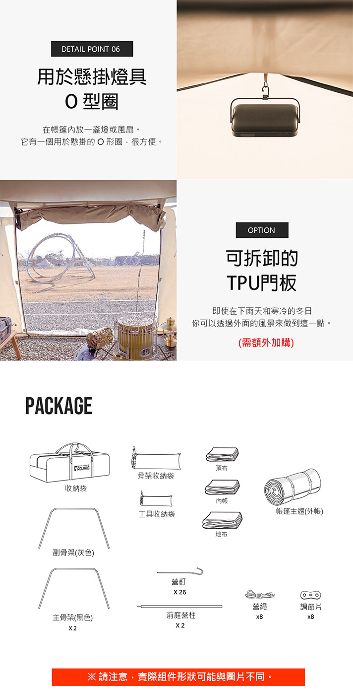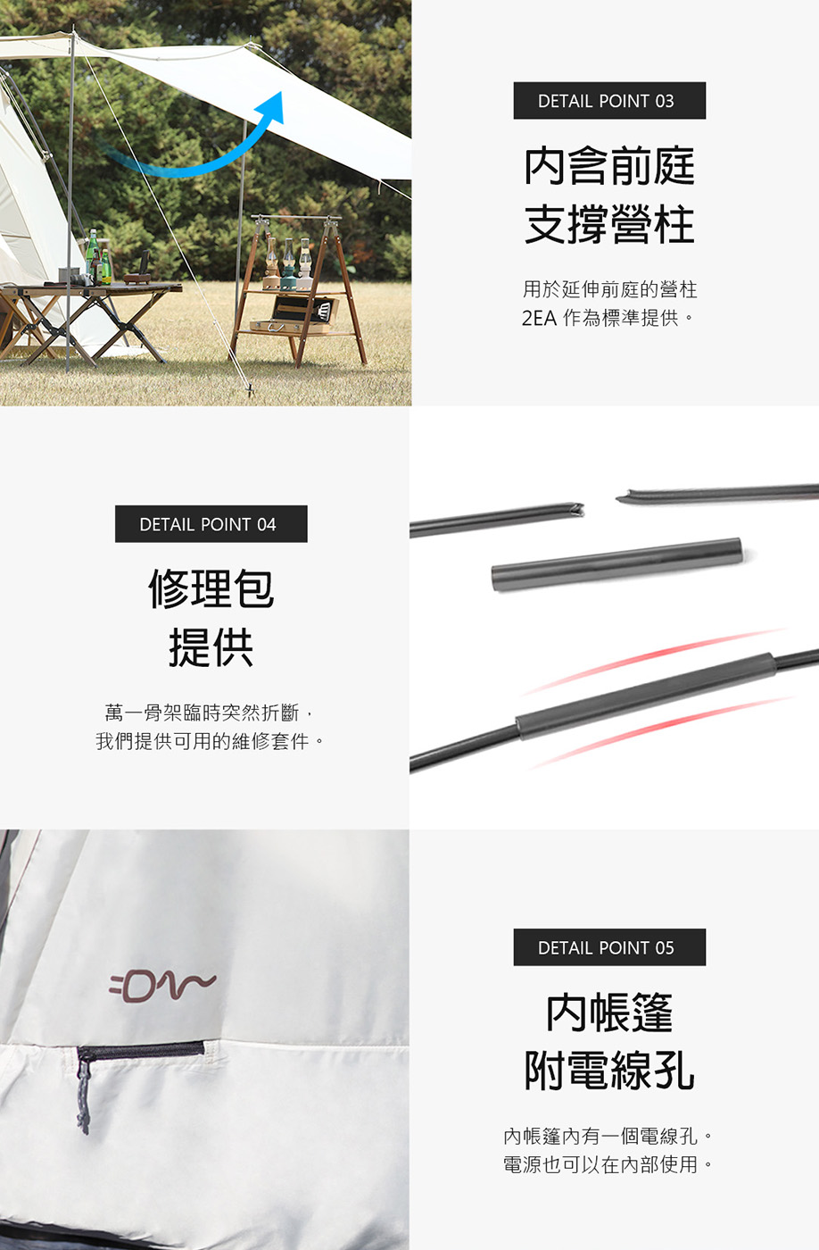 .內含內帳、地布、頂布、前庭營柱、修理包