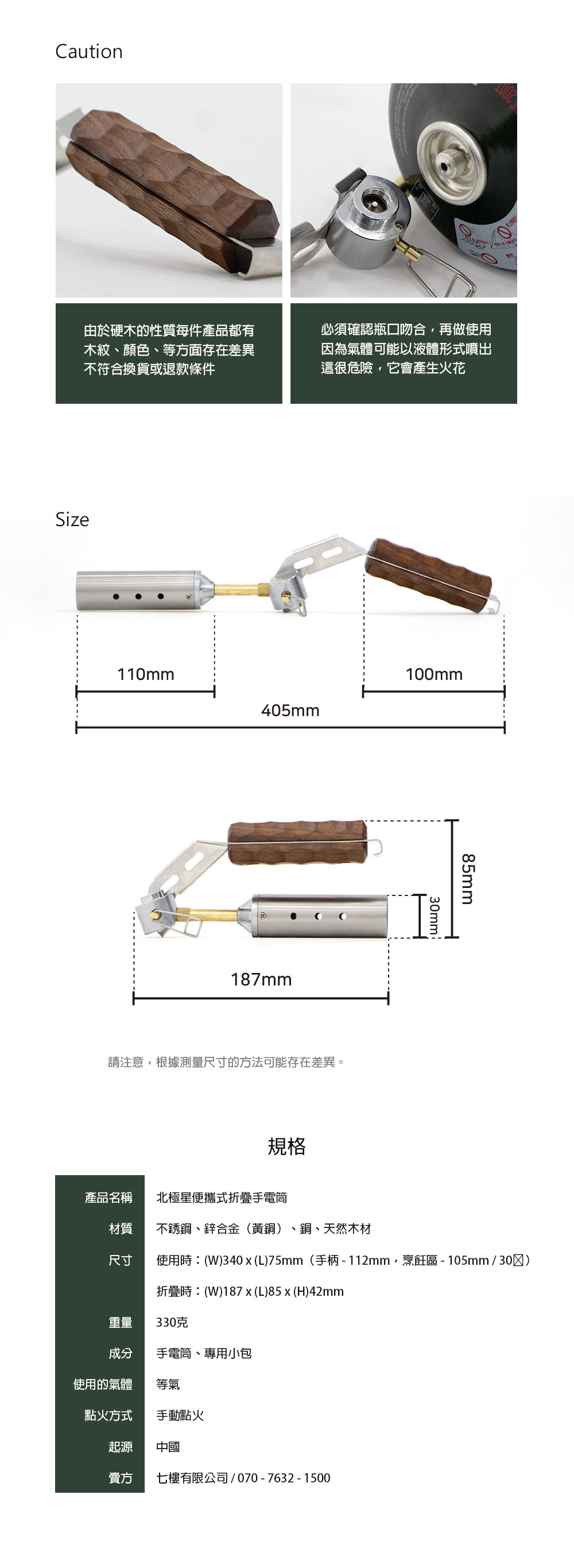 展開尺寸:405mm 木柄長度:100mm噴火處尺寸:110mm