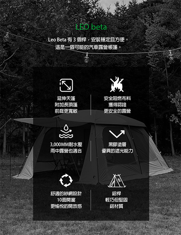 3.帳篷內使用明火的話,可能會發生火災,最好不要使用明火