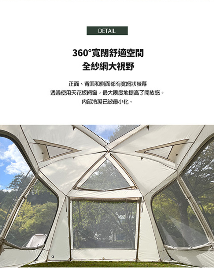 .十面紗網可透視融入大自然,有程度地減少了內部結露現象