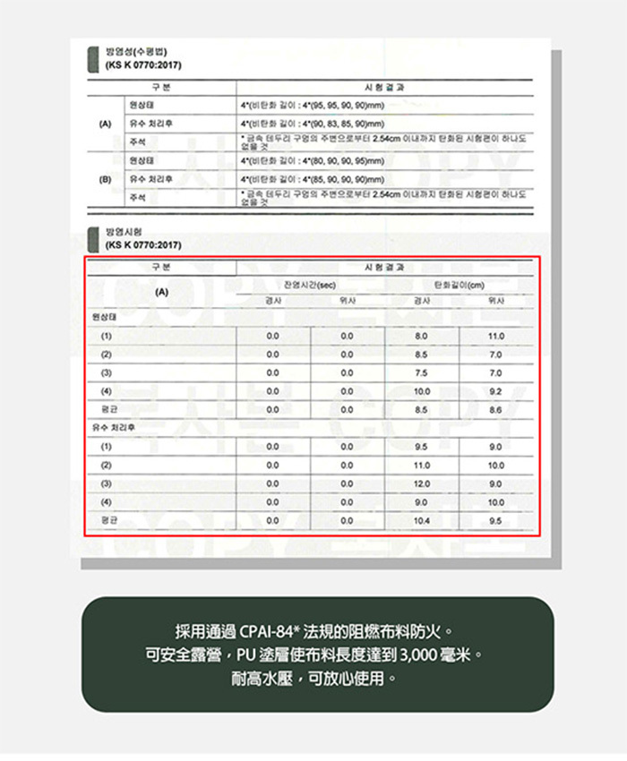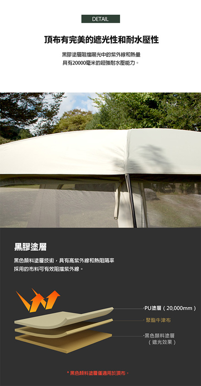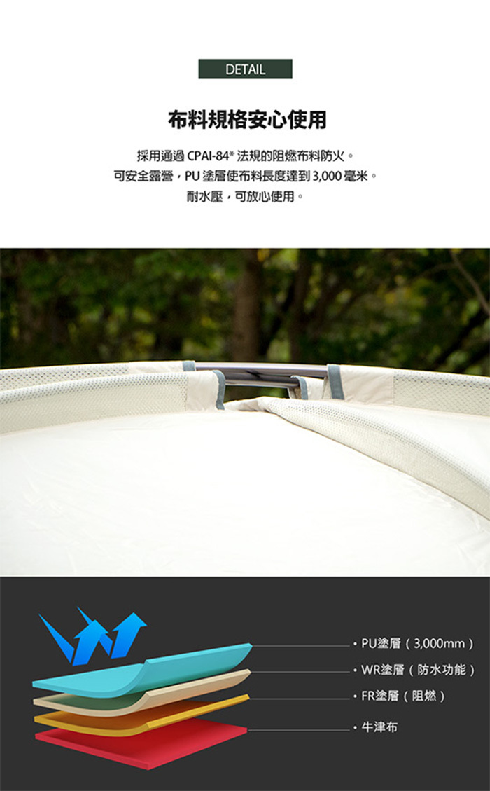 .面料PU塗層處理:使用規定的阻燃性面料,能夠安全地露營