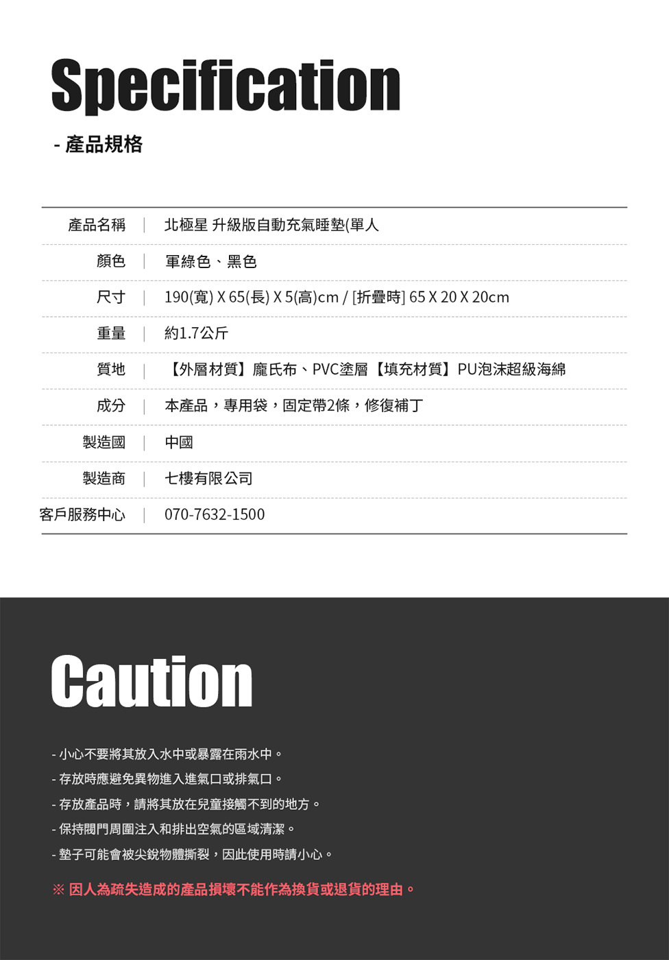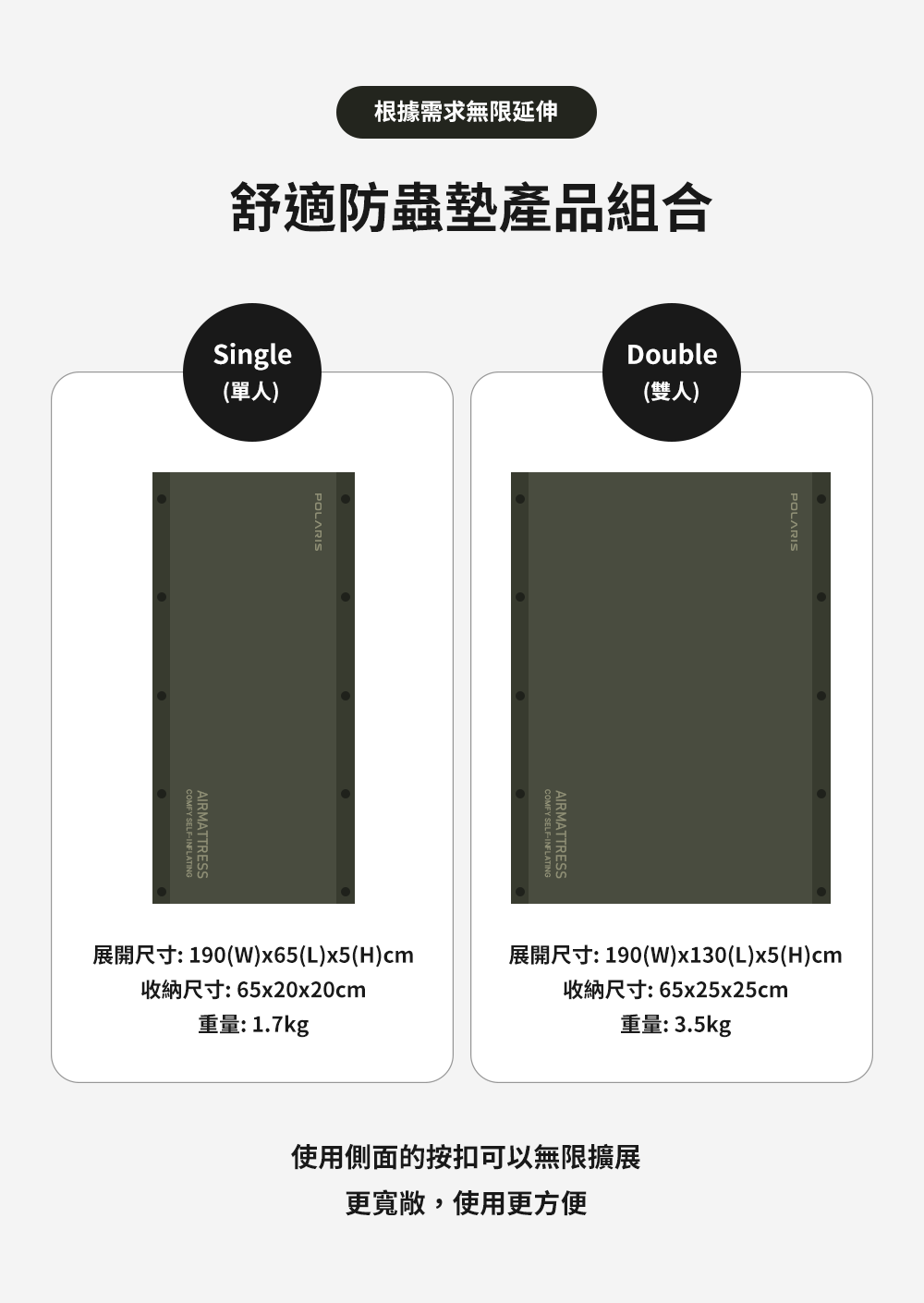 展開尺寸:W190 × L65 × 5(H) cm