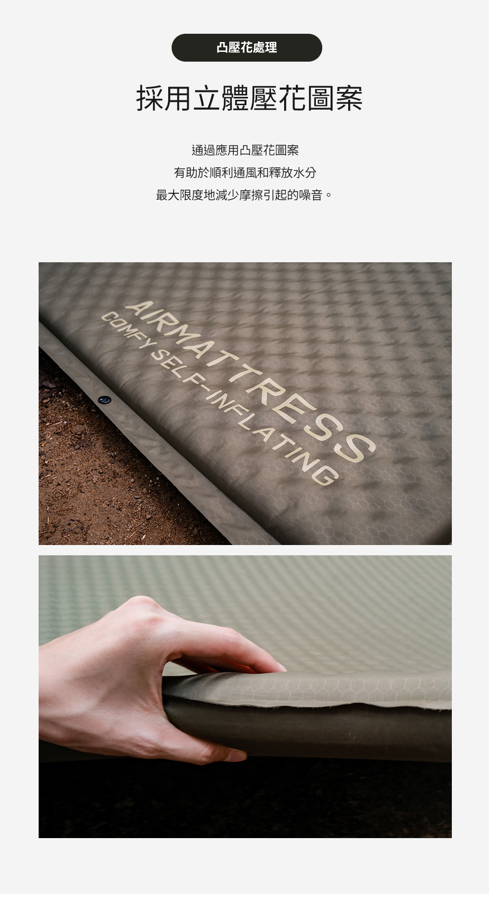 .表面蜂巢圖案應用,和立體壓花圖紋助於通風,