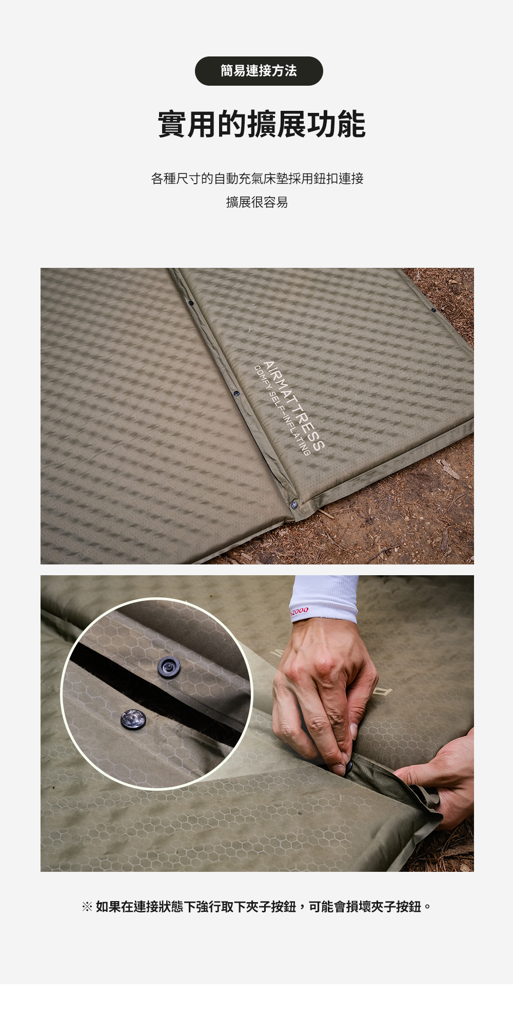 過度充氣可能造成墊子破裂