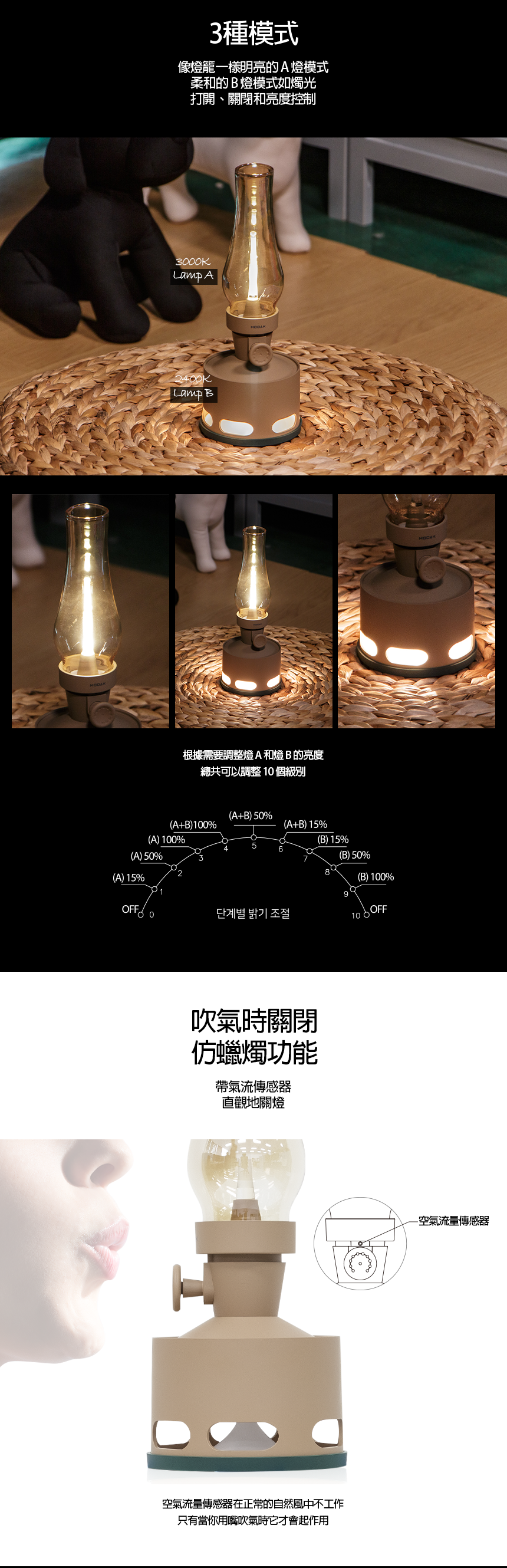 A-電筒明亮模式/B-燭光模式/打開再關-可調節亮度