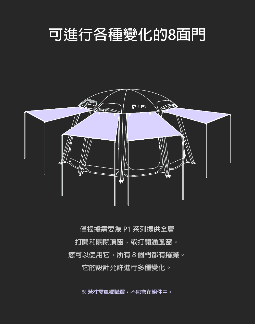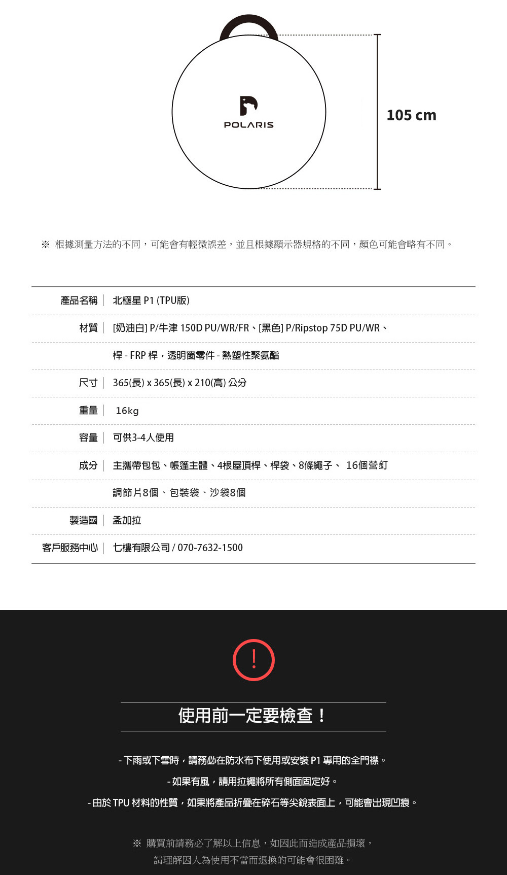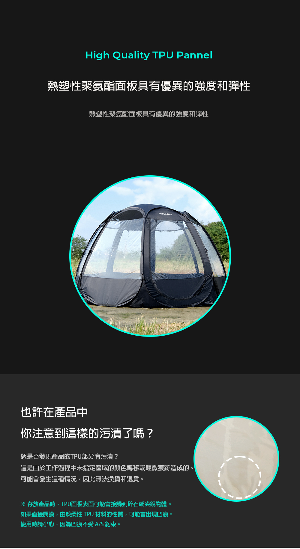 5.強風的環境下,需要注意檢查營柱,風繩。風太大的情況,請及時拆卸並收起帳篷
