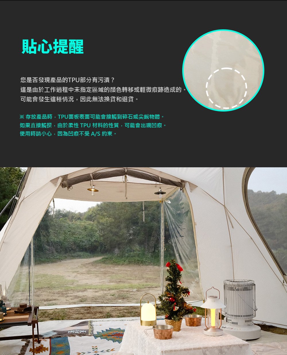 3.帳篷內使用明火的話,可能會發生火災,最好不要使用明火