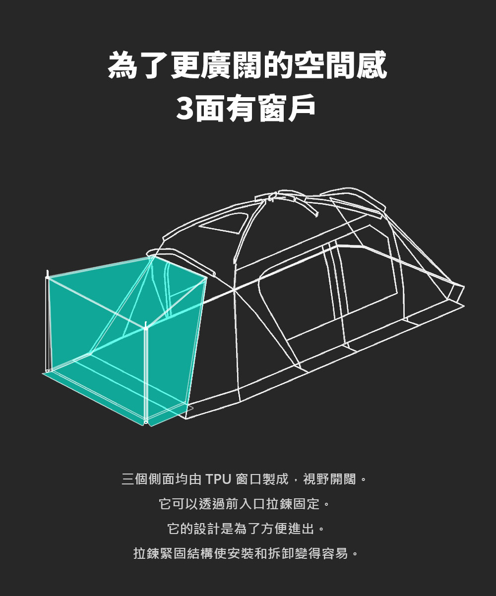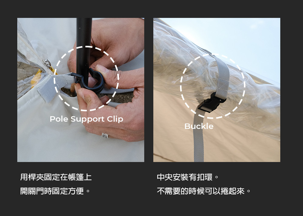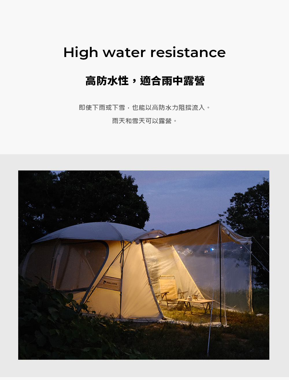5.強風的環境下,需要注意檢查營柱,風繩。風太大的情況,請及時拆卸並收起帳篷