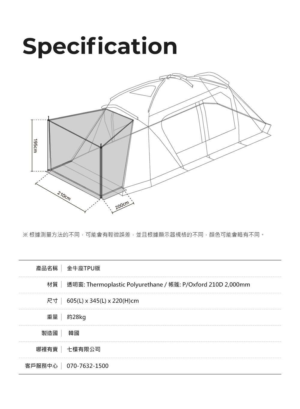 展開尺寸:605×345×220 cm| 內帳尺寸:330×220×H200