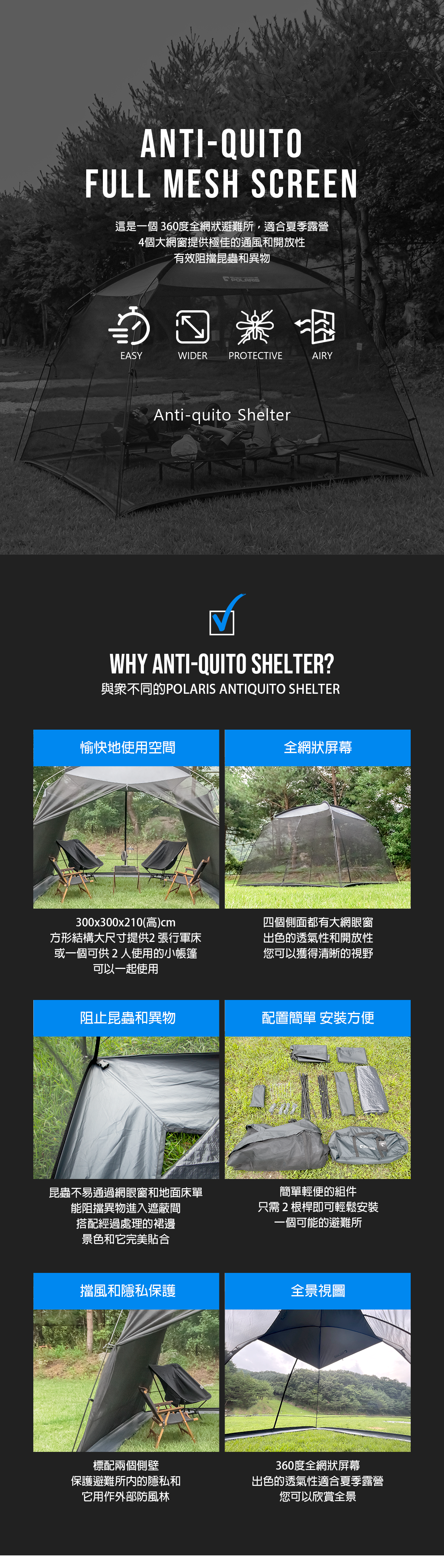 .四面紗網可透視融入大自然,防止蚊蟲叮咬