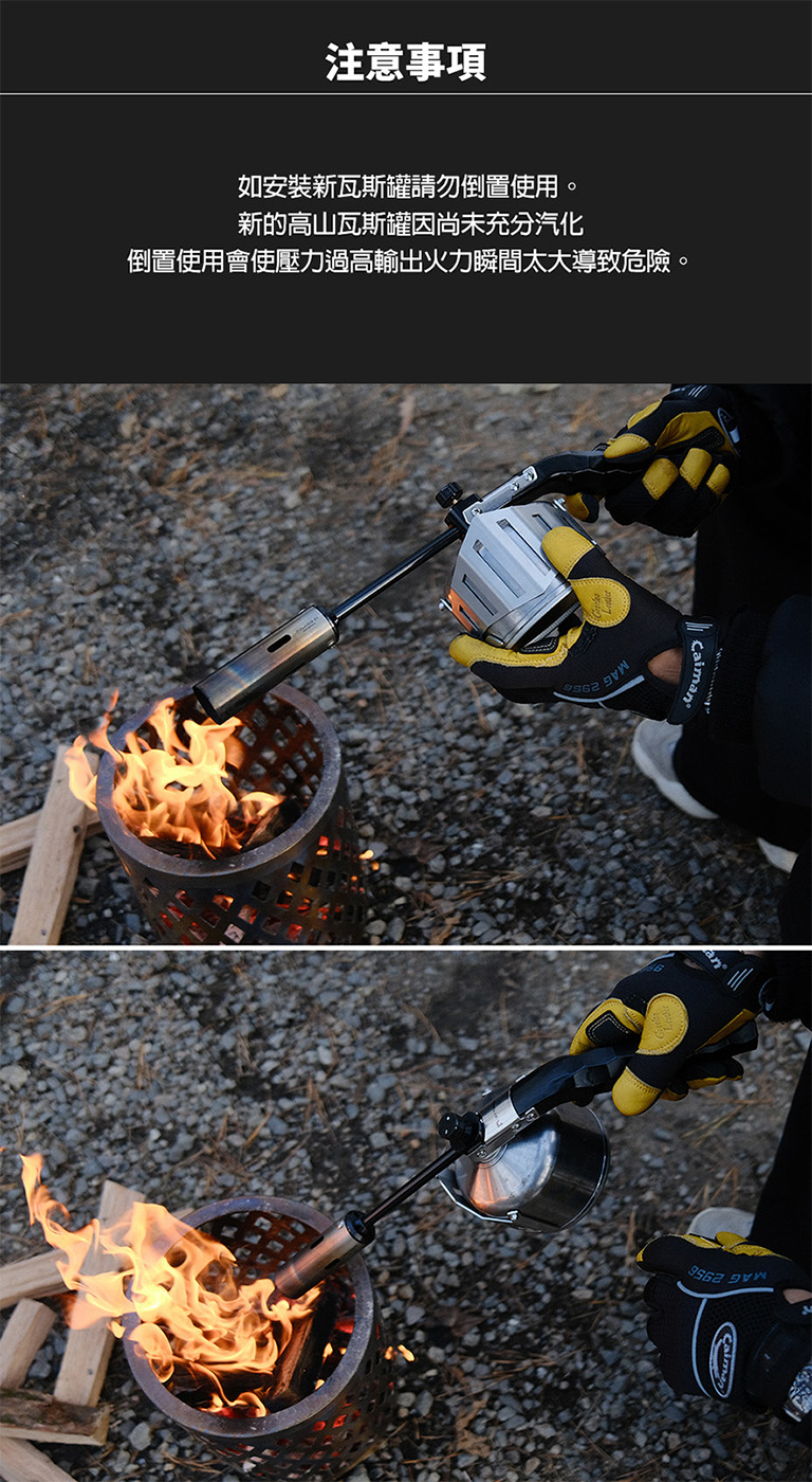 5.連接瓦斯罐時請勿倒置再使用以避免火力過猛