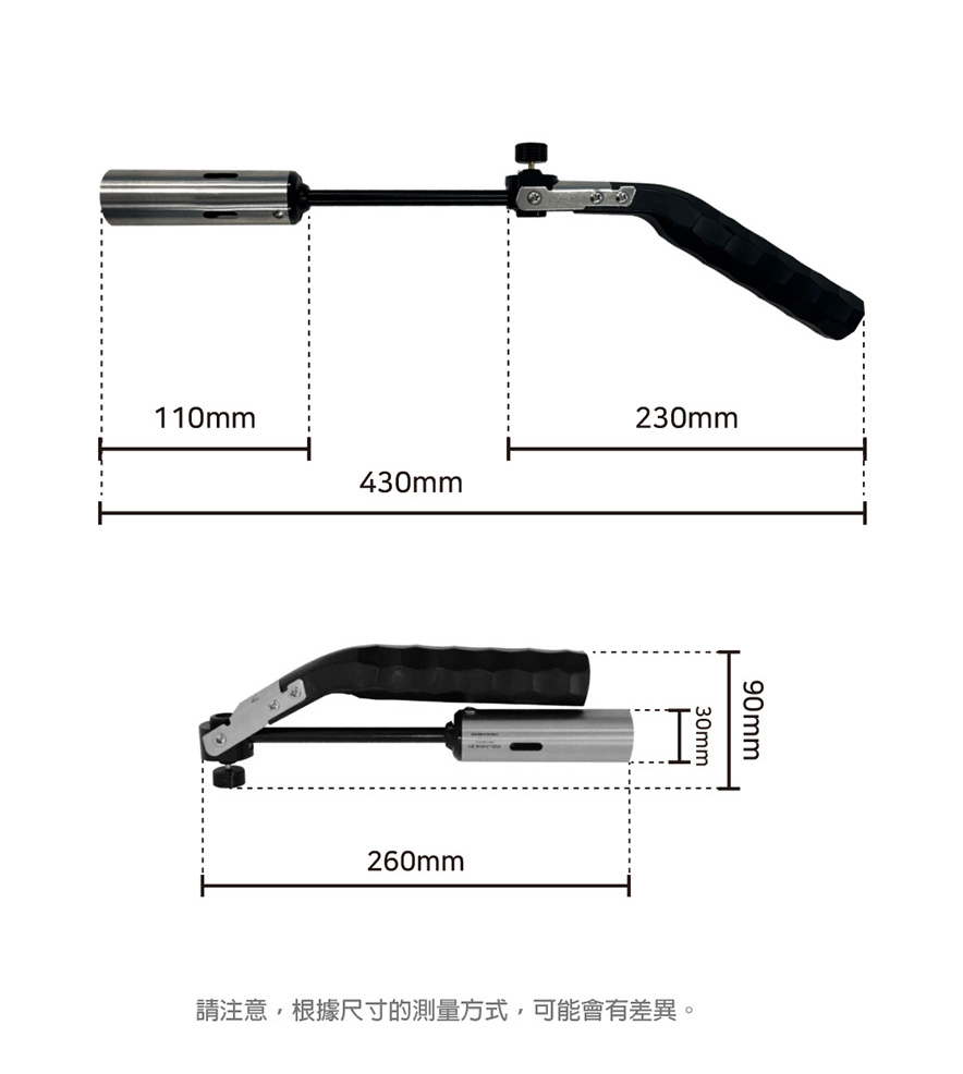 展開尺寸:430mm |木柄長度:230mm|噴火處尺寸:110mm