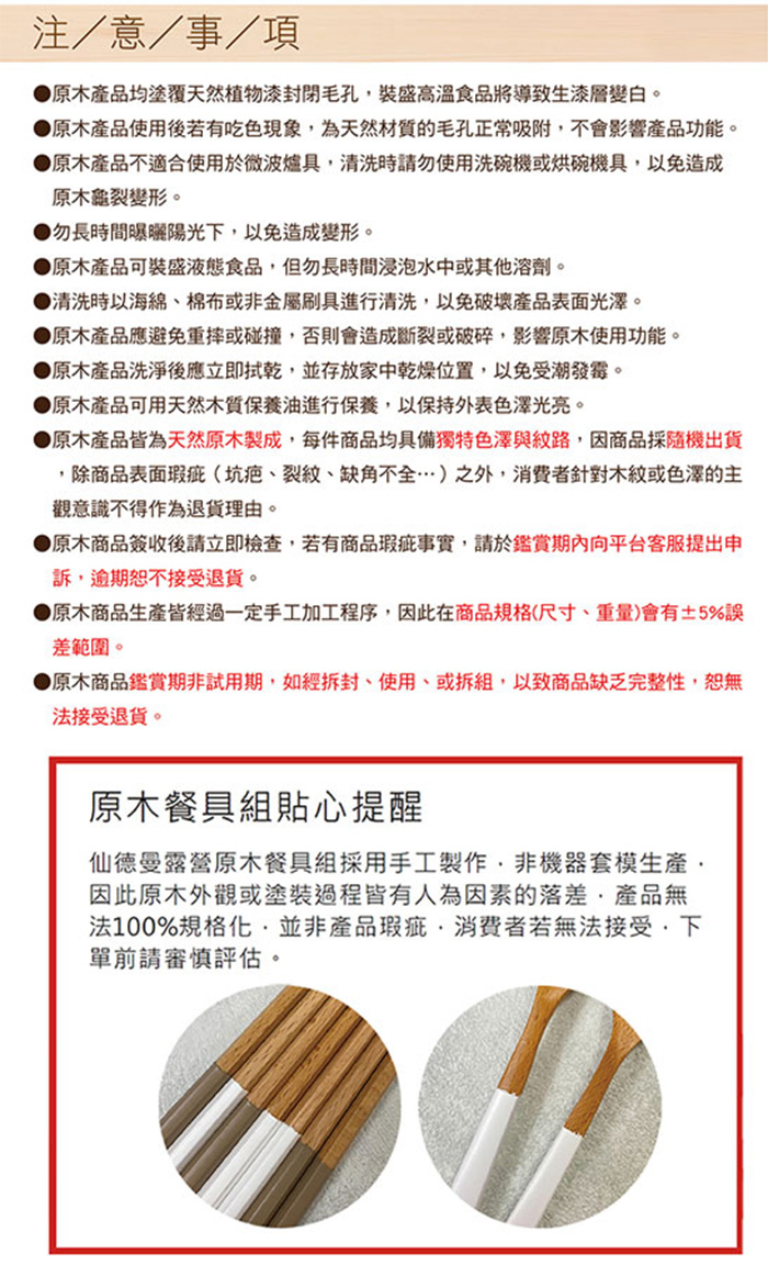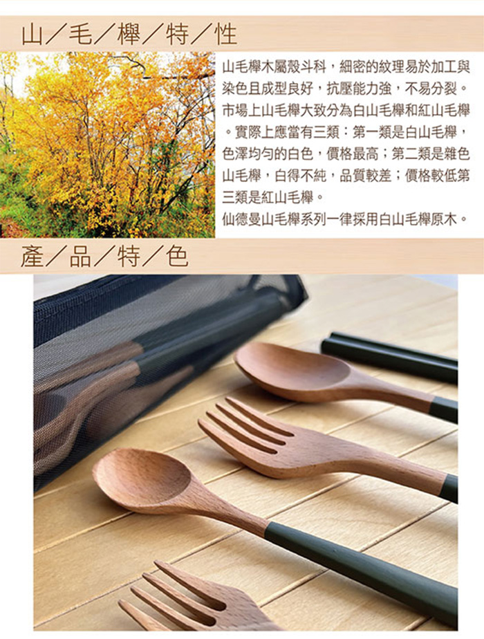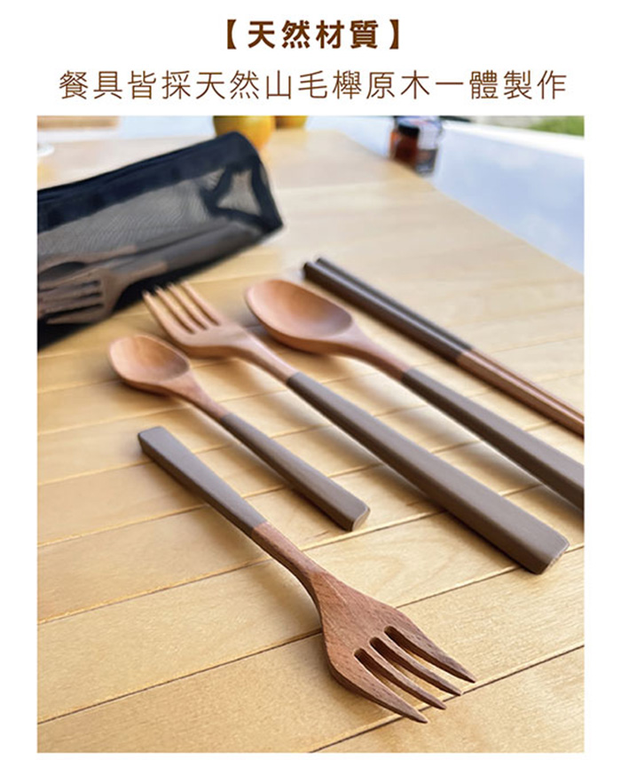 .天然材質 : 餐具皆採天然山毛櫸原木一體製作