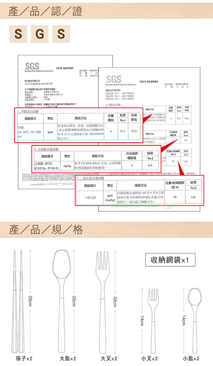內容物 : 筷X2雙,大匙X2,大叉X2,小匙X2,小叉X2,網袋X1