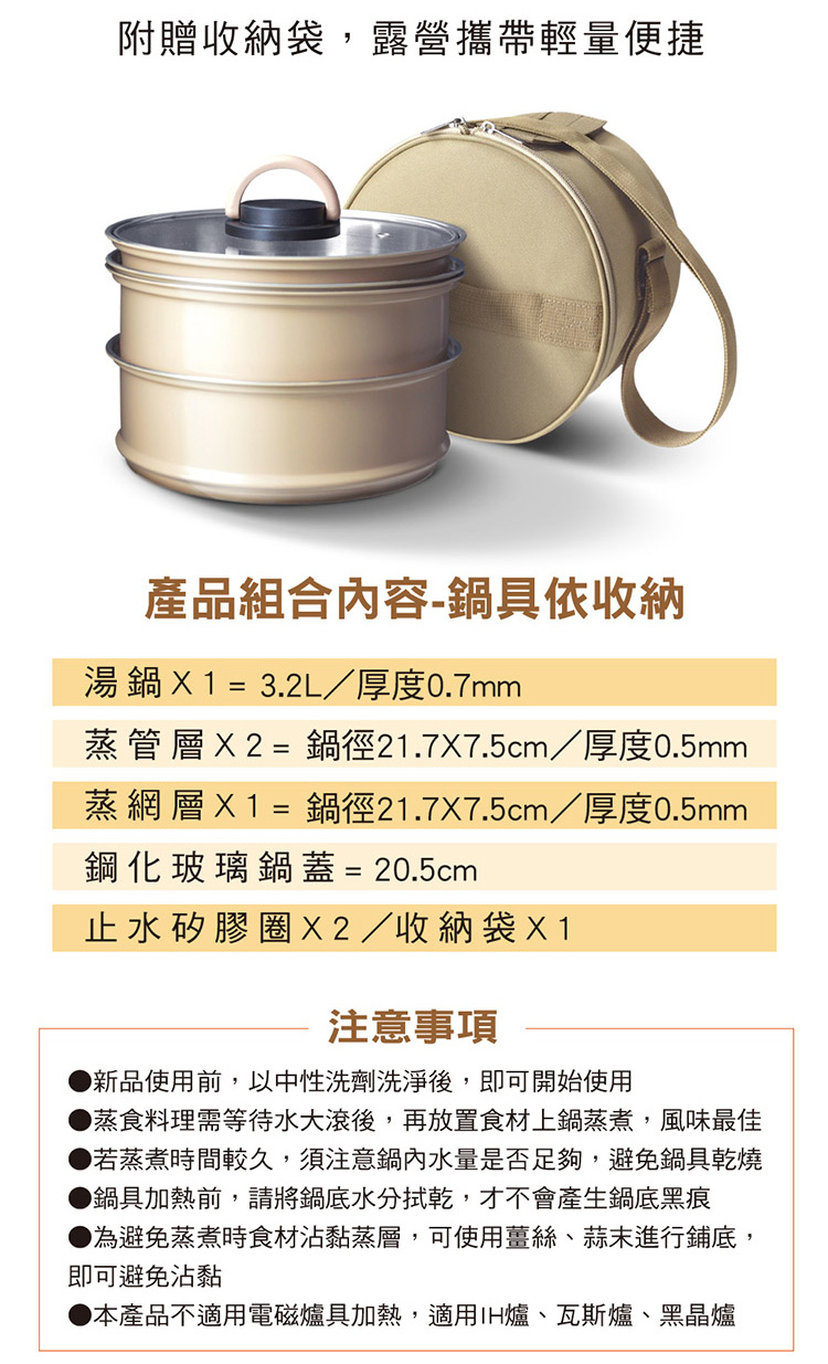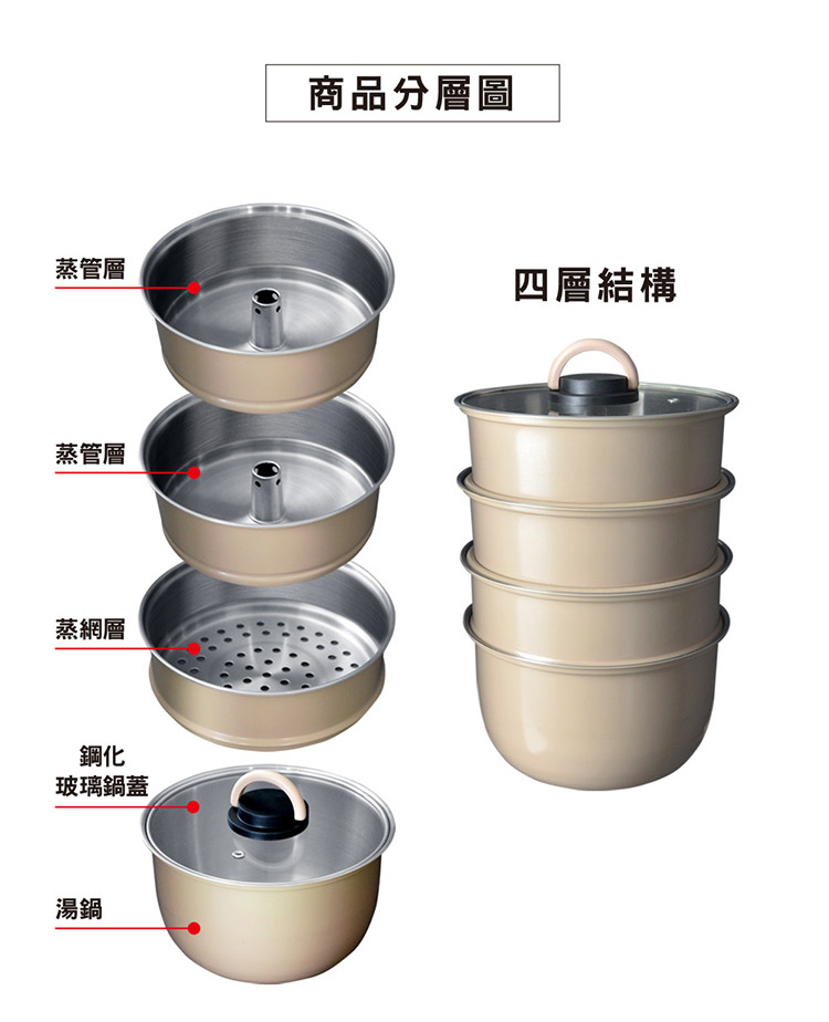 蒸管層 × 2 : 鍋徑 21.7 X 7.5cm/厚度0.5mm