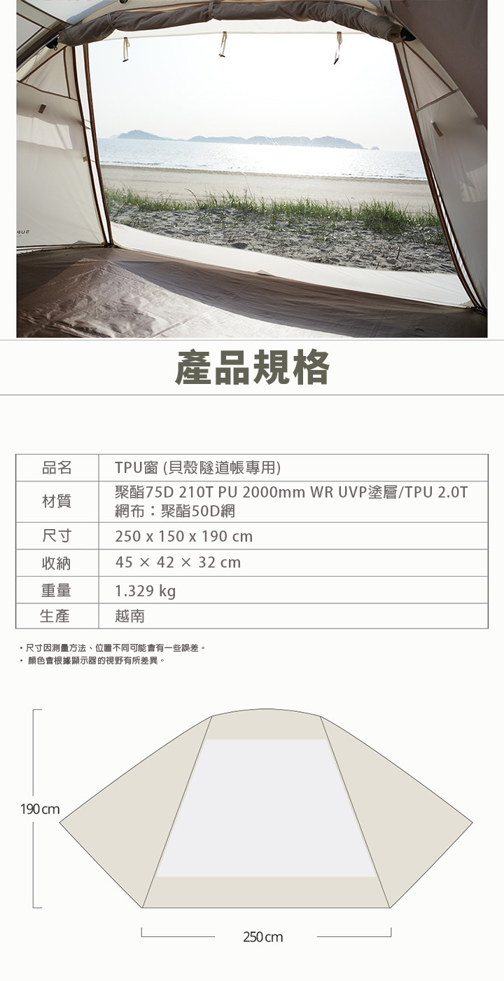 展開尺寸 : 250 x 150 x 190 cm