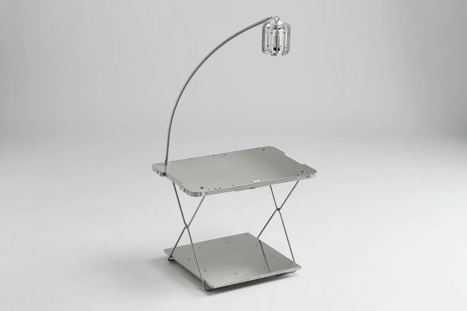 以THOR箱體上蓋為設計主軸 強調戶外裝載運用的多元風貌,利用不銹鋼元素平整設計蓋板 除了能完整內嵌讓箱體為桌面,搭配新式X桌腳便可一物兩用 內卡榫設計組裝即成風格桌體,將銀係主流冷冽工業帶入實用 讓露營裝備更加簡約融入生活