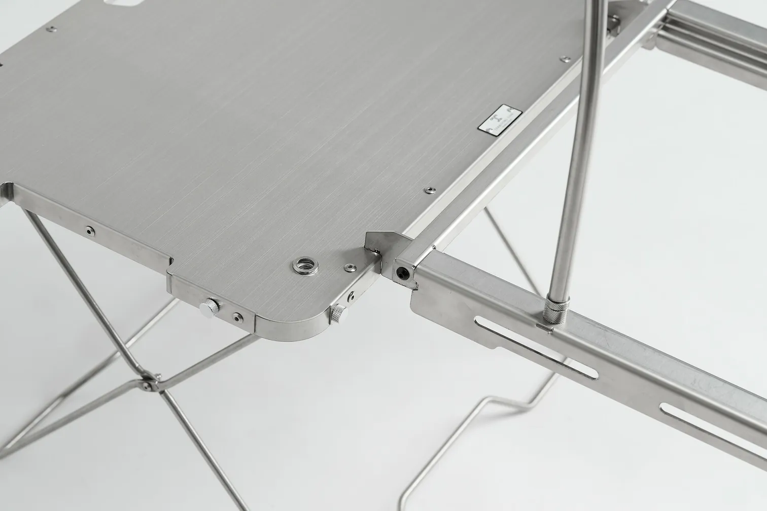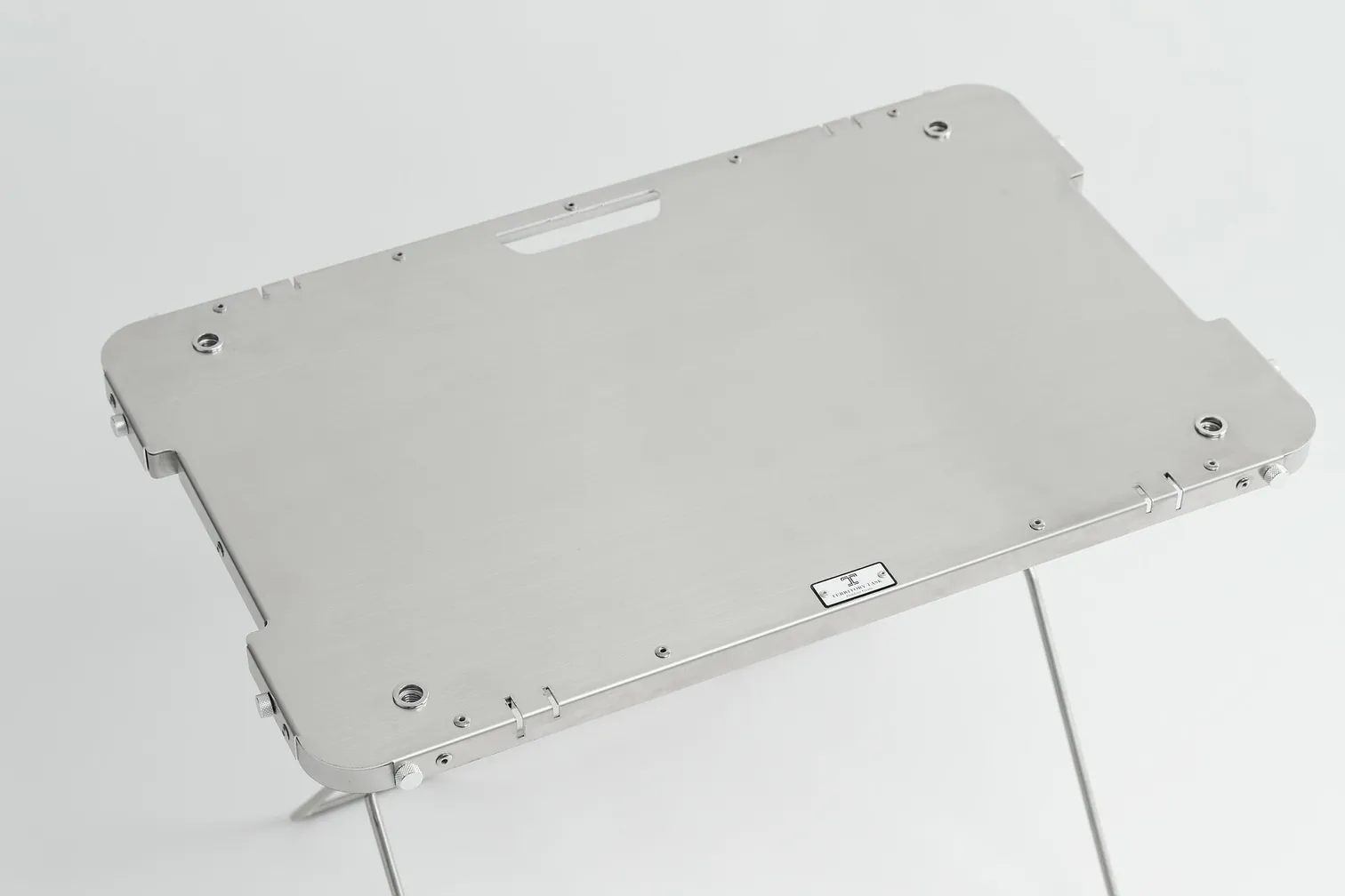 以THOR箱體上蓋為設計主軸 強調戶外裝載運用的多元風貌,利用不銹鋼元素平整設計蓋板 除了能完整內嵌讓箱體為桌面,搭配新式X桌腳便可一物兩用 內卡榫設計組裝即成風格桌體,將銀係主流冷冽工業帶入實用 讓露營裝備更加簡約融入生活