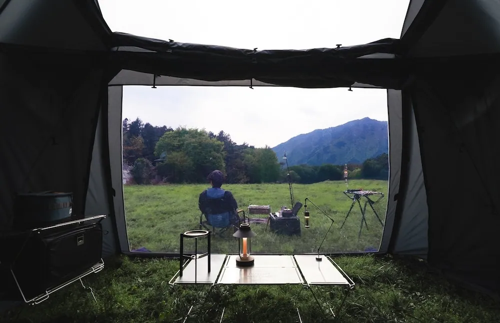 前方擁有大面積的開闊視野,即使待在帳篷裡,也能盡情欣賞自然美景,同時兼顧開放感與隱私性。