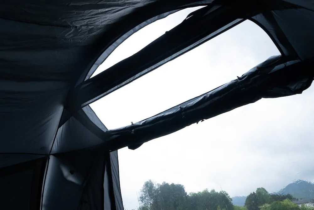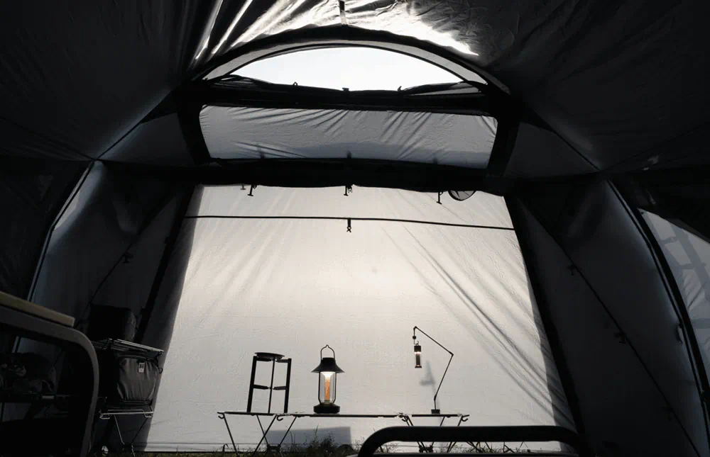 帳篷上方的兩個天窗可加裝 TPU 覆蓋,白天能引入陽光,夜晚則可欣賞滿天星空。即使天氣突然變化,也能在帳內迅速應對。