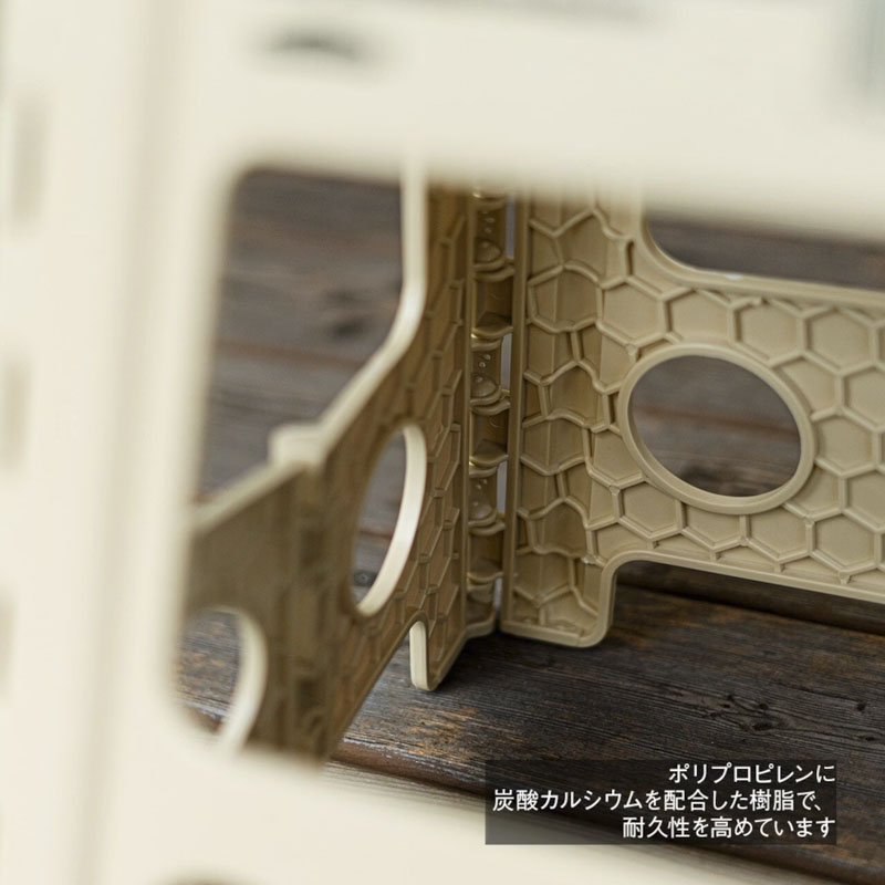摺疊墊高椅的材質採用聚丙烯(PP)加入碳酸鈣製作而成,進而提升摺疊墊高椅的硬度及耐用性