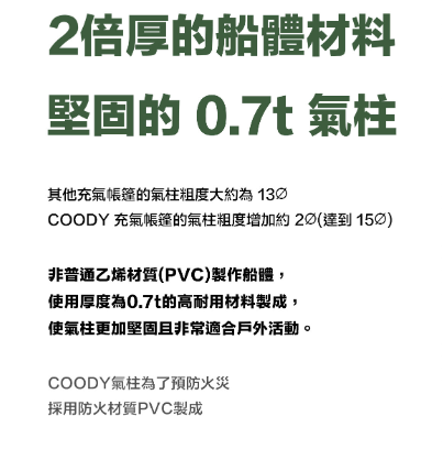 厚實耐用的氣柱,即使在風雪中也能安全使用