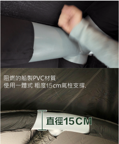 即使體積大也能輕鬆安裝的充氣天幕
