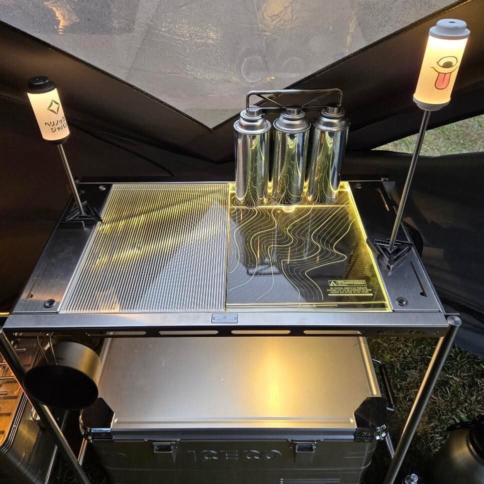 .結合 可調式桌框 + ANGLE 擴展置物架,打造穩固又彈性的戶外置物系統